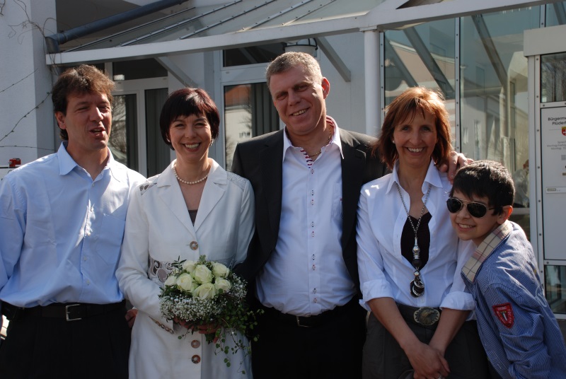 links Gitte, in der Mitte Jannik, der mittlere Sohn von Gitte mit seiner Freundin und rechts Aljoscha der ältste Sohn von Gitte.