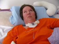 Tanja kann nicht nur sichtbar den rechten Mittelfinger bewegen, sondern sie kann mit der linken Hand sogar eine "Faust" machen.